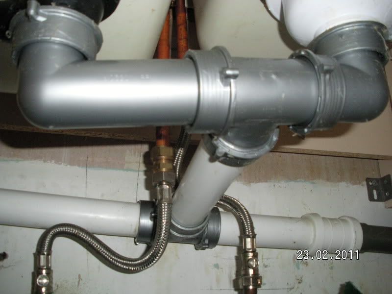 you say seems to fall from left to right-do u mean grey pipes on sink or the washing machine waste at the back? if this is the case yes washing machine waste is raised slightly with a block of wood so it flows better-but i guess it really isnt needed-that much water coming down will find its way....if u mean the grey yup the small sink is a lot higher on the thread and hence tilts down to the left...am off to toolstation to source some parts,hopefully will post pic when done and leak free!