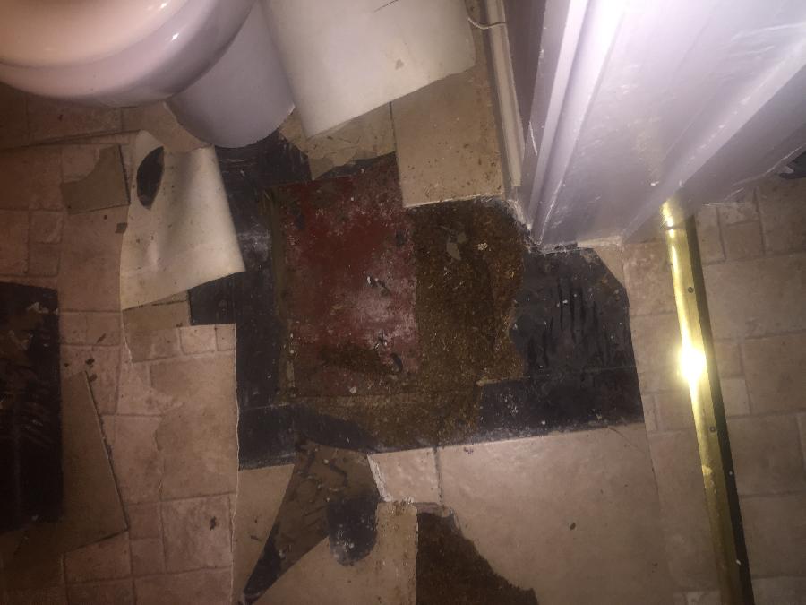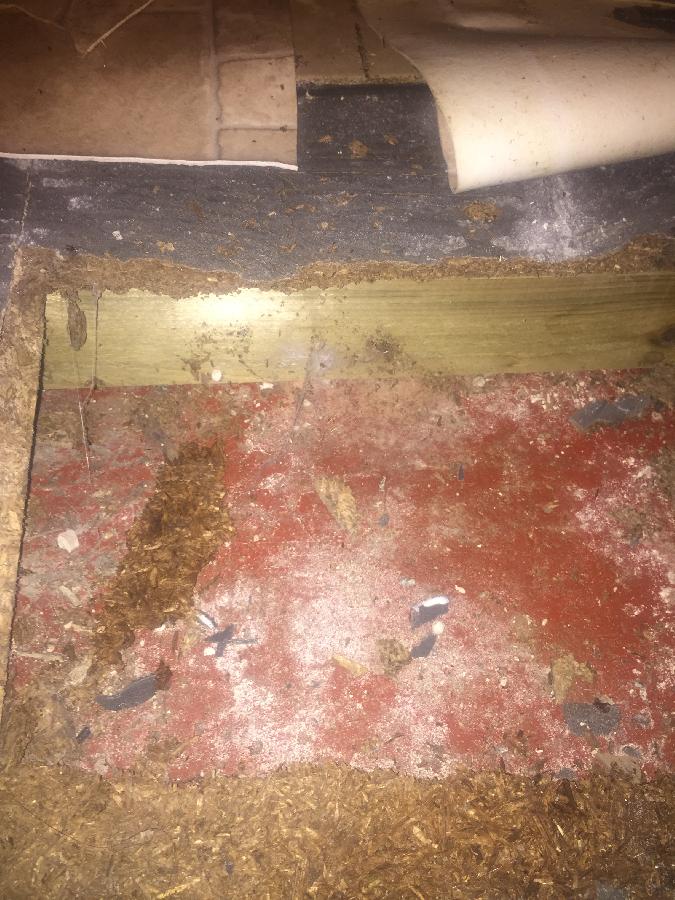 In the extension there is the utility room and also a small toilet room. The floor in the toilet has fallen through and the utility room is starting to get that way. It looks as though moisture has weakened the wood and has caused this to happen.